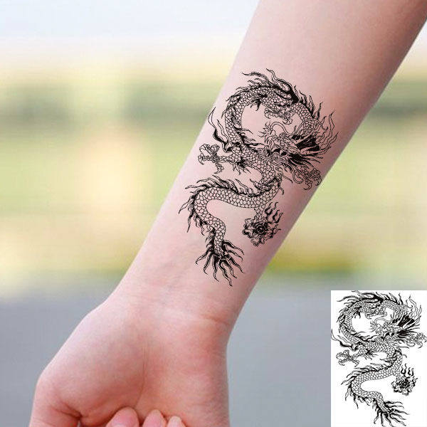 过肩龙纹身贴彩色青龙纹身贴防水纹身贴男持手臂龙纹身贴纸纹身贴防水