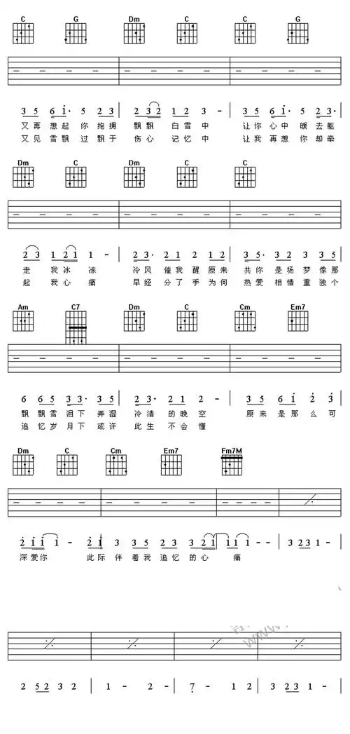 梁玉莹《飘雪》吉他谱-《飘雪》g调高清原版六线谱