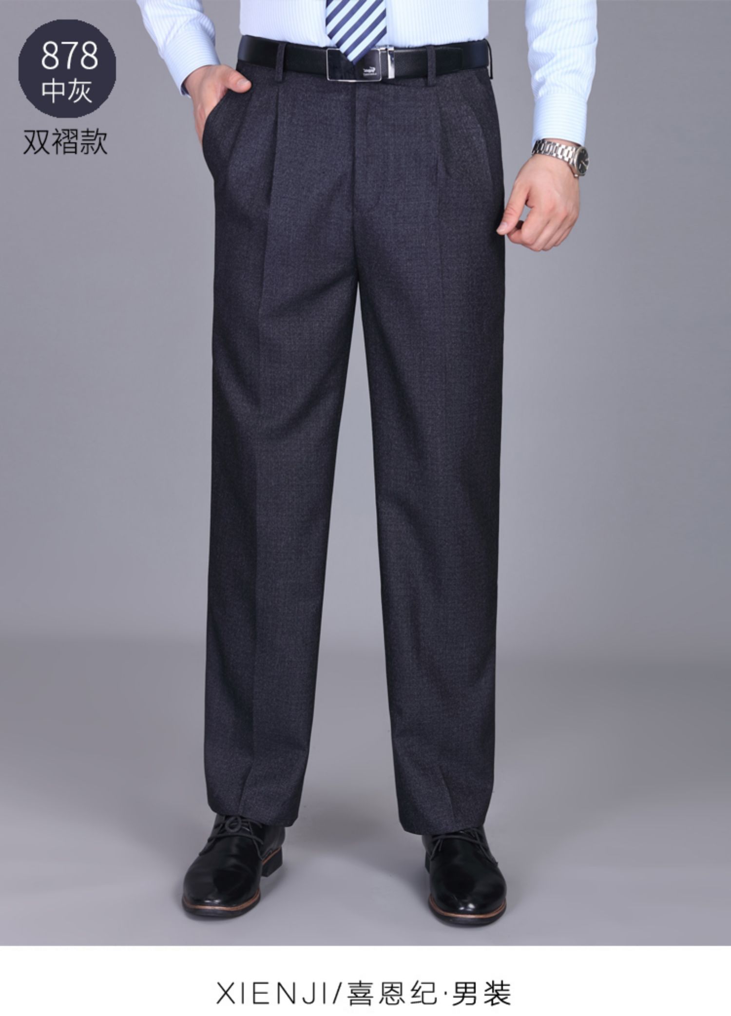 高品质西装裤中老年款双褶正装西裤男高腰宽松加肥加大码爸爸装深档