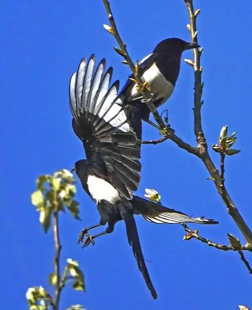 喜鹊的叫声也象征着美好的寓意,喜鹊的叫声为"喳喳喳喳,喳喳喳喳",意