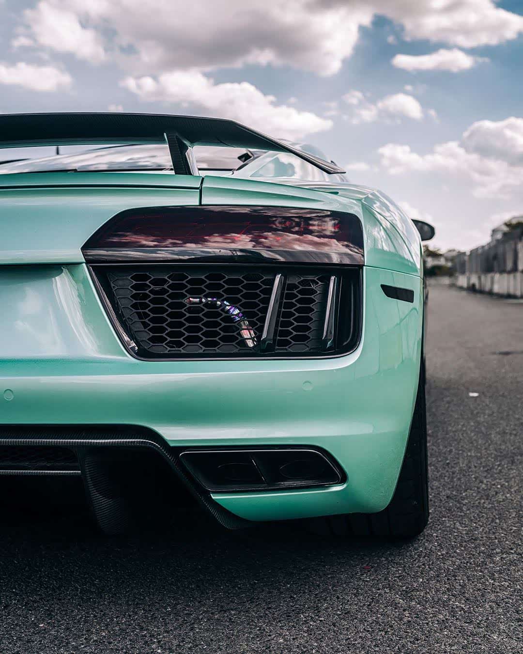 【audi r8】薄荷绿r8加上白毂,小清新!