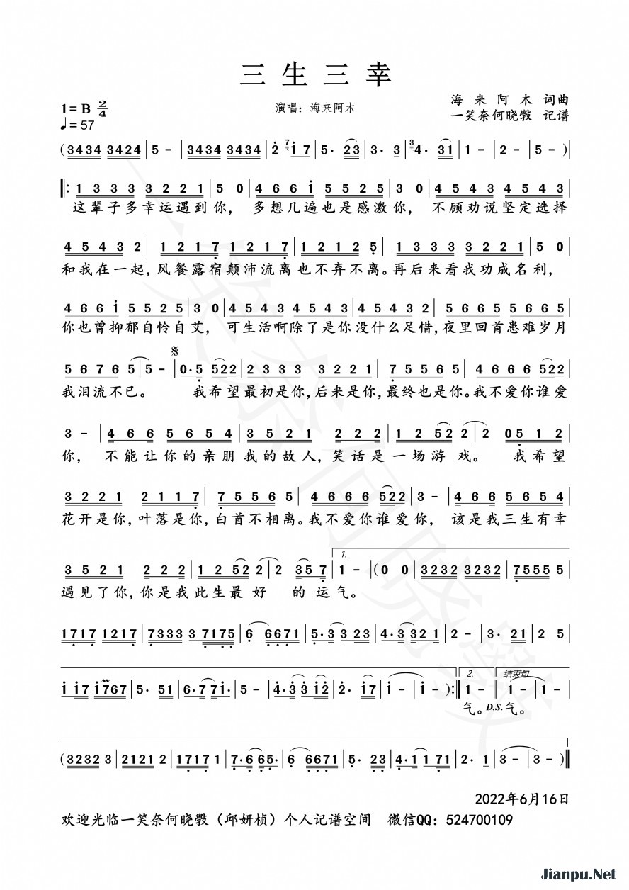 凉凉简谱-杨宗纬/张碧晨-三生三世不过转眼一瞬间-钢琴谱网