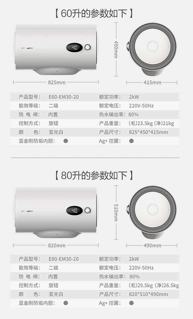 威博集团mck电热水器家用速热储水式40升50升60升80升淋浴热水器 标准
