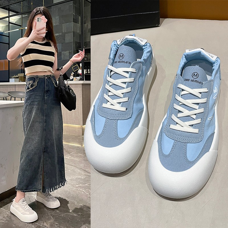 女生小白鞋百搭厚底黑色帆布鞋女2024春季新款丑萌大头鞋复古板鞋