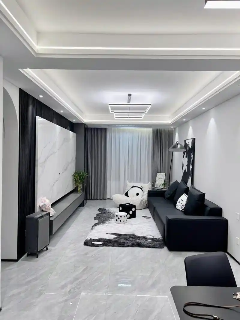 整体客厅以现代风为基调,搭配低调个性的灰色,布艺的沙发又柔和了这一