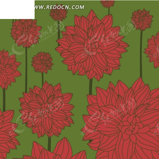 红色花朵和绿色叶子矢量素材