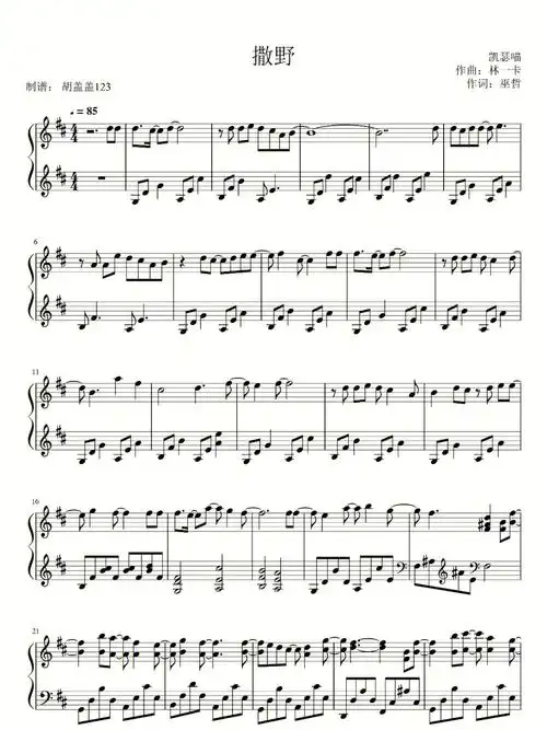 撒野-d调版双手简谱预览1