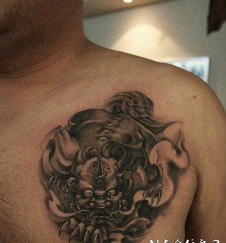 胸前麒麟纹身作品欣赏
