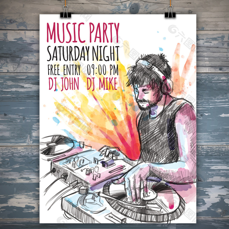 手绘音乐派对的海报图片