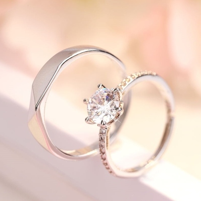 s925纯银情侣戒指一对镶嵌锆石开口对戒简约男女款指环不掉色饰品