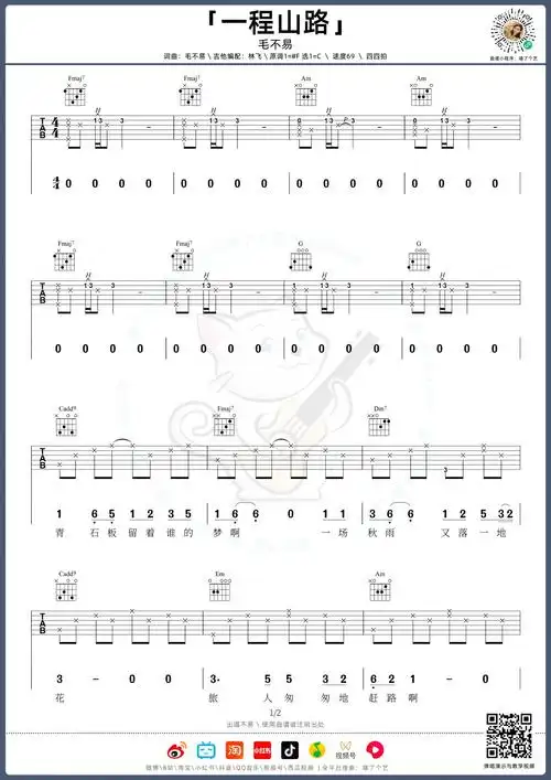 吉他谱 #一程山路 #一程山路吉他谱 #毛不易 - 抖音