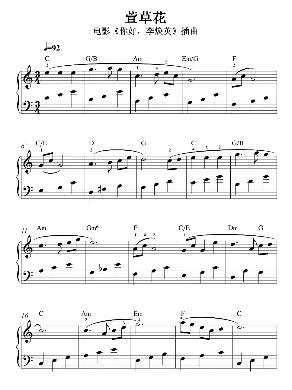 《萱草花》钢琴谱入门简单 今天老师给大家分享一首萱草花的钢琴谱