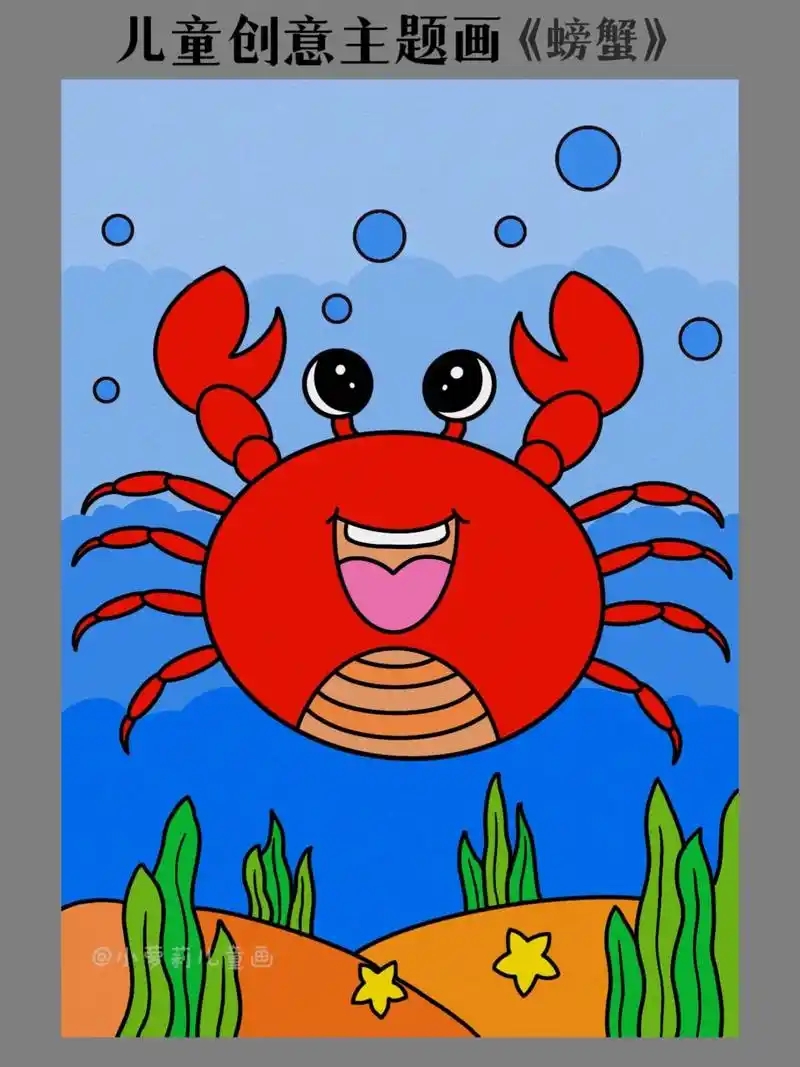 简笔画 #螃蟹 #创意美术 #儿童画 #创意儿童画 霜降快 - 抖音