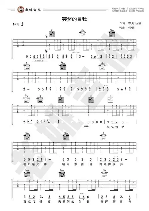 突然的自我吉他谱伍佰e调图片谱完整版