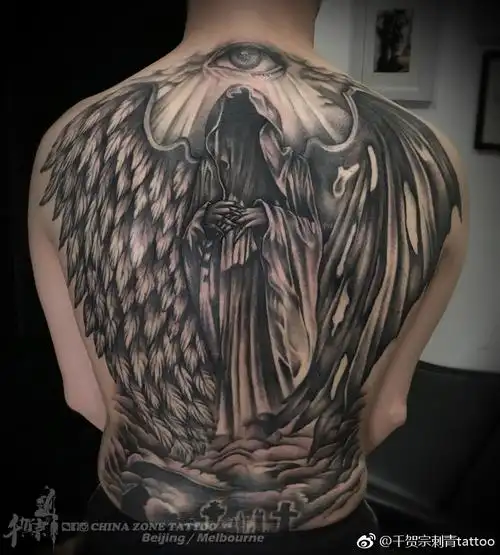 堕天使纹身图片_背部欧美写实纹身图案