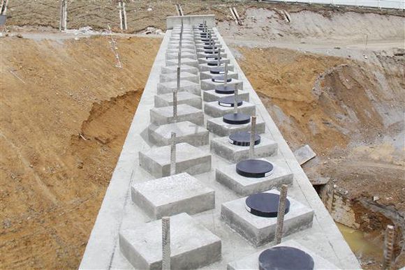 1,长湖桥西侧桥梁支座垫石施工,已浇垫石浇水养护.