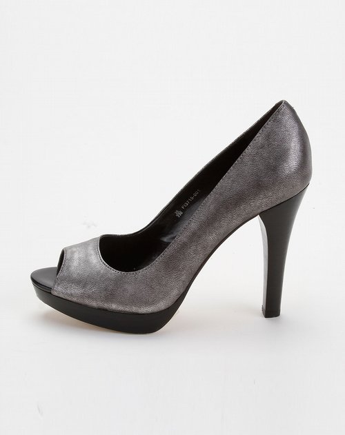 女款银灰色厚水台超高跟鱼嘴单鞋