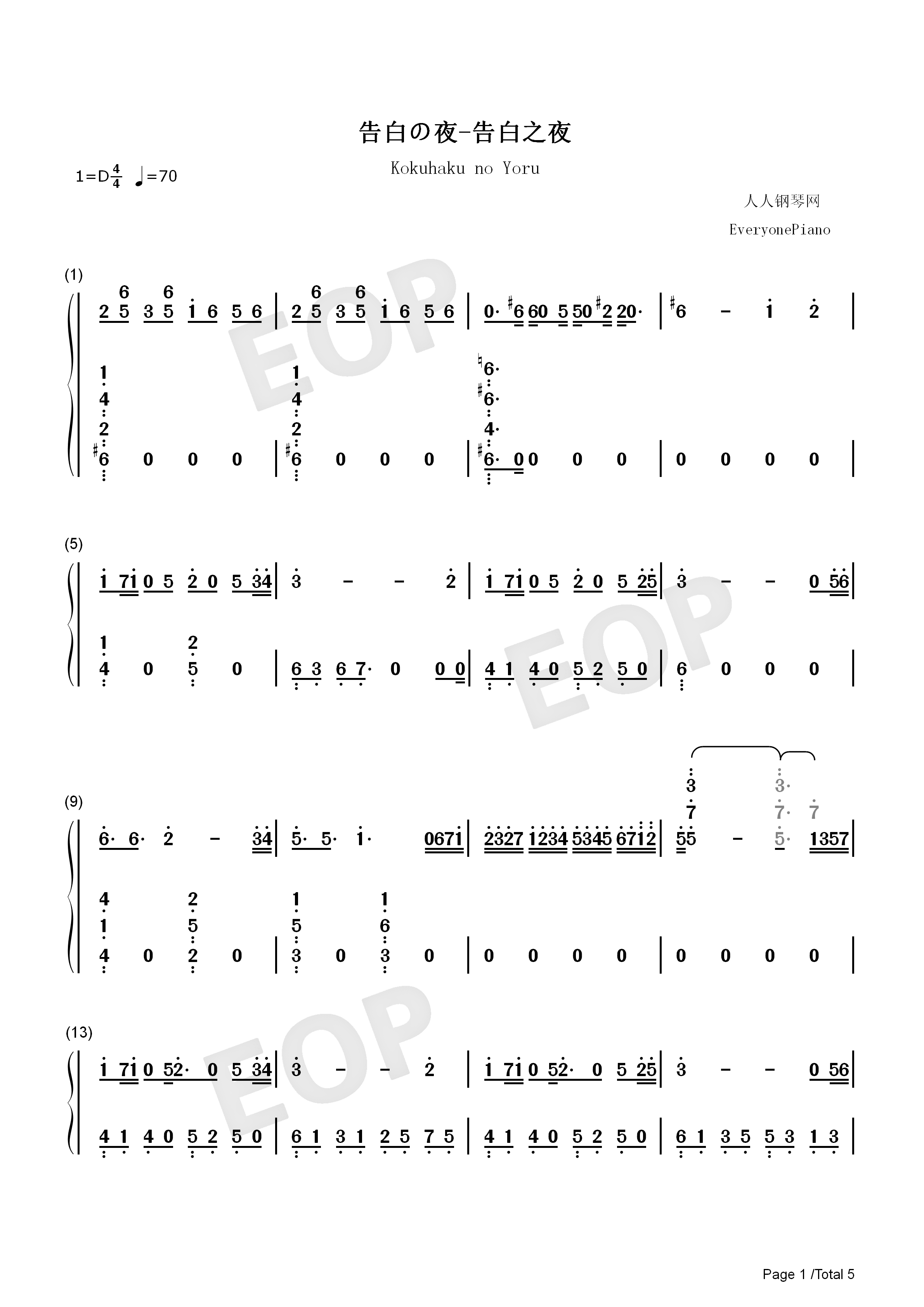 告白之夜-告白の夜-抖音爆火bgm双手简谱预览2-钢琴谱文件(五线谱
