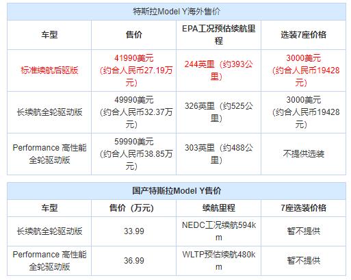 特斯拉新能源电动汽车价格表