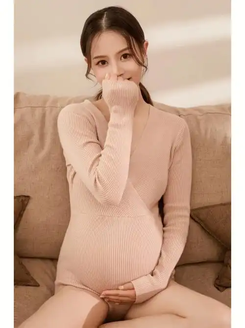 服装孕妇摄影唯美卡其色开衫影楼主题写真大肚影楼服装