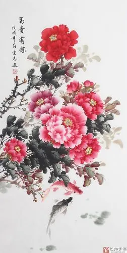 安徽美协云志四尺竖幅牡丹《富贵有余》