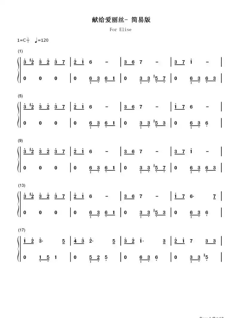 《献给爱丽丝》双手简谱版~超适合零基础的爱好者哦 - 抖音
