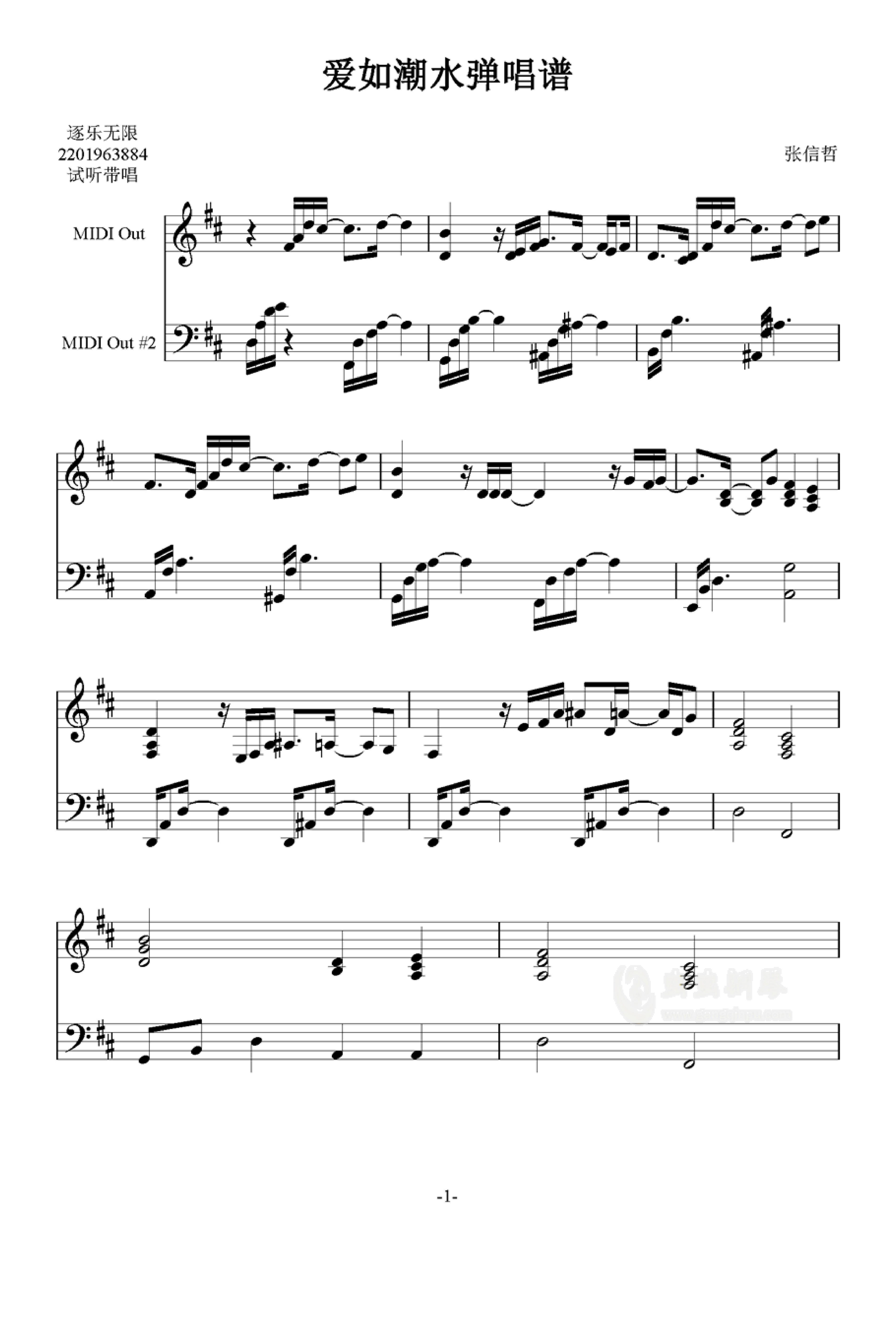 《爱如潮水》(弹唱版)钢琴谱-zxbhrb-虫虫钢琴