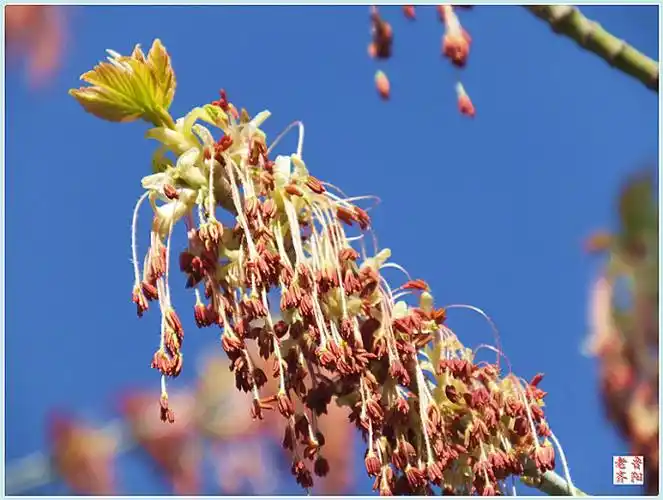 春风里金叶梣叶槭吐絮开花了