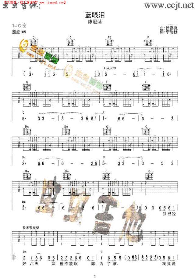 陈冠蒲蓝眼泪吉他谱