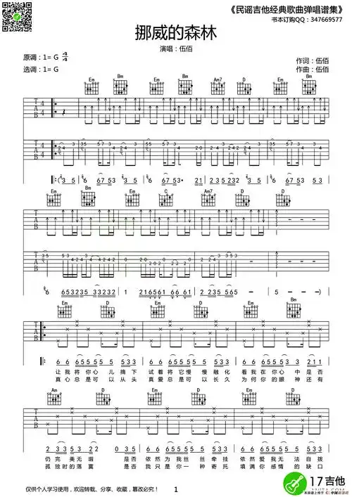 挪威的森林_挪威的森林简谱_挪威的森林吉他谱_钢琴谱-查字典简谱网