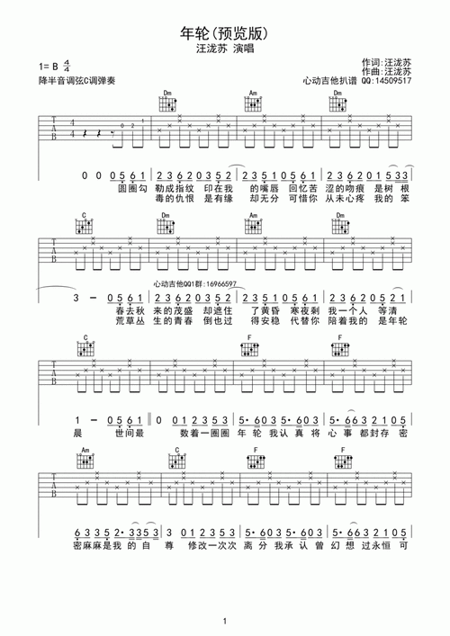 《年轮》完整编配d调六线pdf谱吉他谱-虫虫吉他谱免费下载