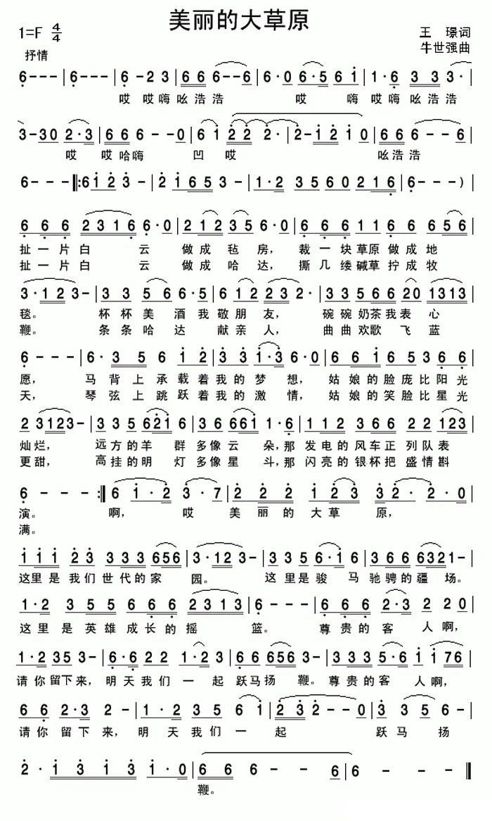 美丽的草原我的家高清版简谱1