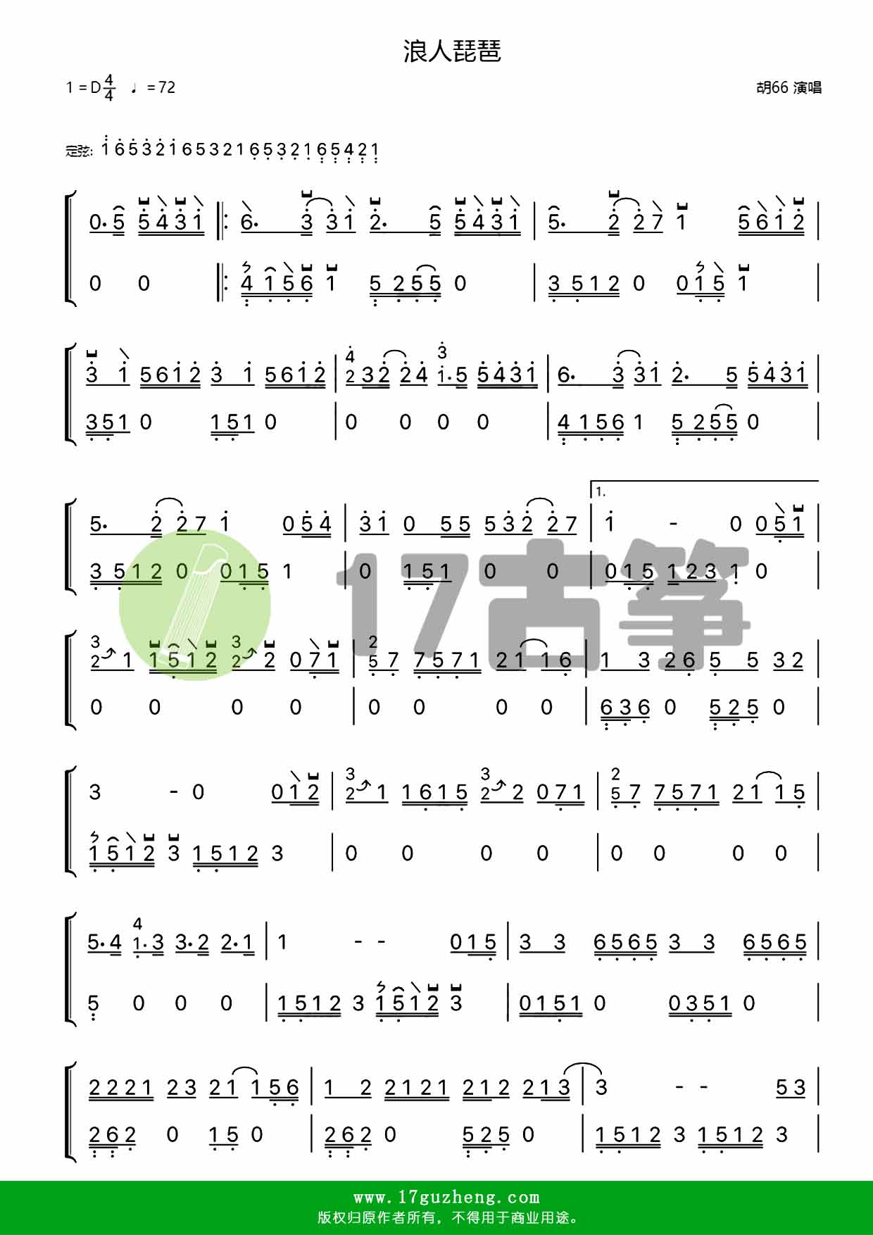浪人琵琶简谱-胡66-小生的花伞还落在你家你美眷如花我浪迹天涯1