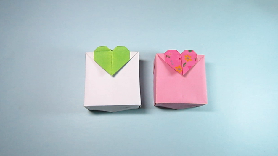 一张纸折一个创意的心形礼盒,可以合拢的爱心盒子折纸
