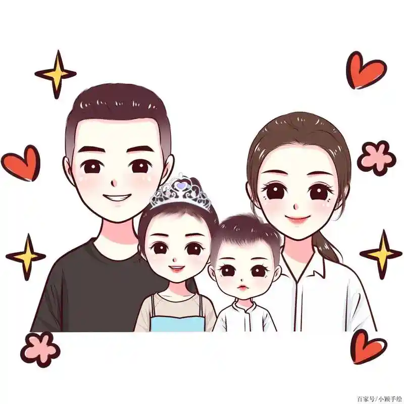 手绘可爱卡通一家四口亲子全家福头像 超好看的手绘一家四口亲子