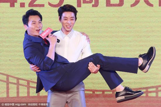 "战狼"队和"毛驴"队派出两名队员接受小小"体罚",表演深蹲 "公主抱"