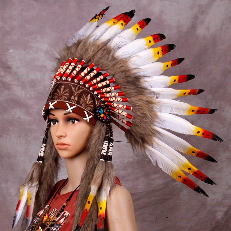 欧美印第安人头饰经典款印第安夸张头饰羽毛发饰发带酋长头饰跨境