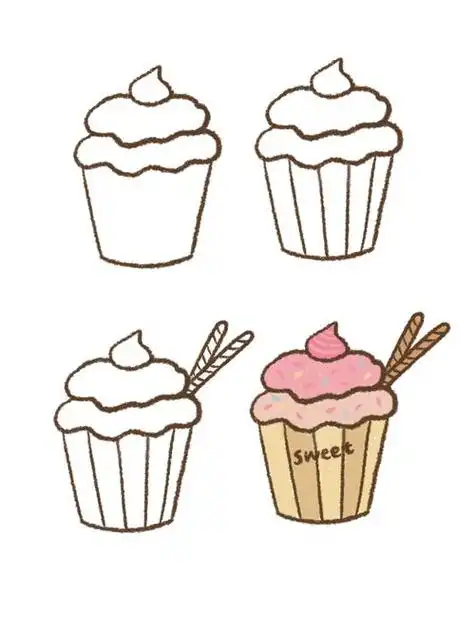 简笔画简单可爱的甜品蛋糕美食素材