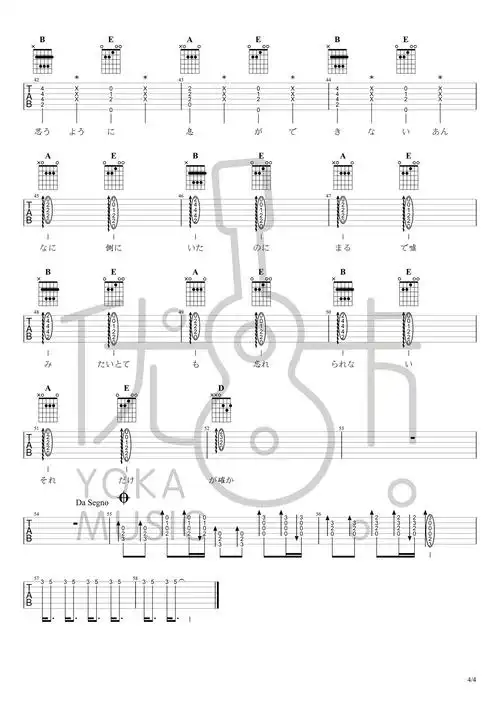 米津玄师lemon吉他谱g调和弦编配变调夹4品为原b调高清六线谱优咔音乐