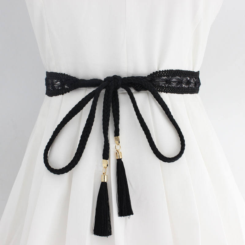 女士手工编织细腰带百搭裙子装饰细皮带韩版打结裙带腰绳腰链皮绳