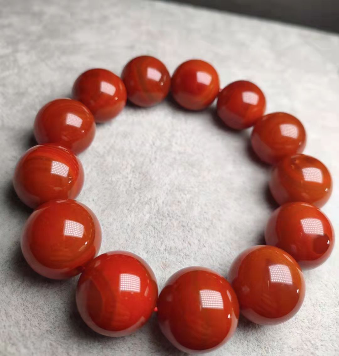宝玉石级南红樱桃红14.5mm圆珠手串