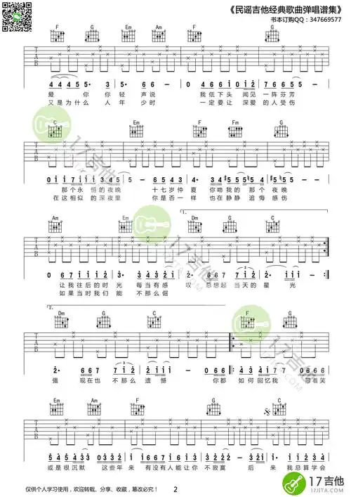 《刘若英《后来》吉他谱 c调高清版》吉他谱