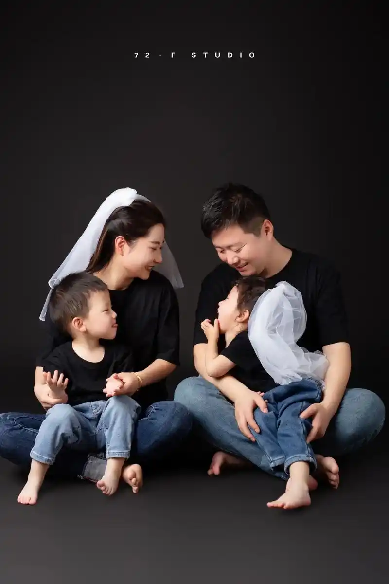 一家四口的亲子照.两个人固然快乐,但四个人好像更幸福欸[爱心 - 抖音