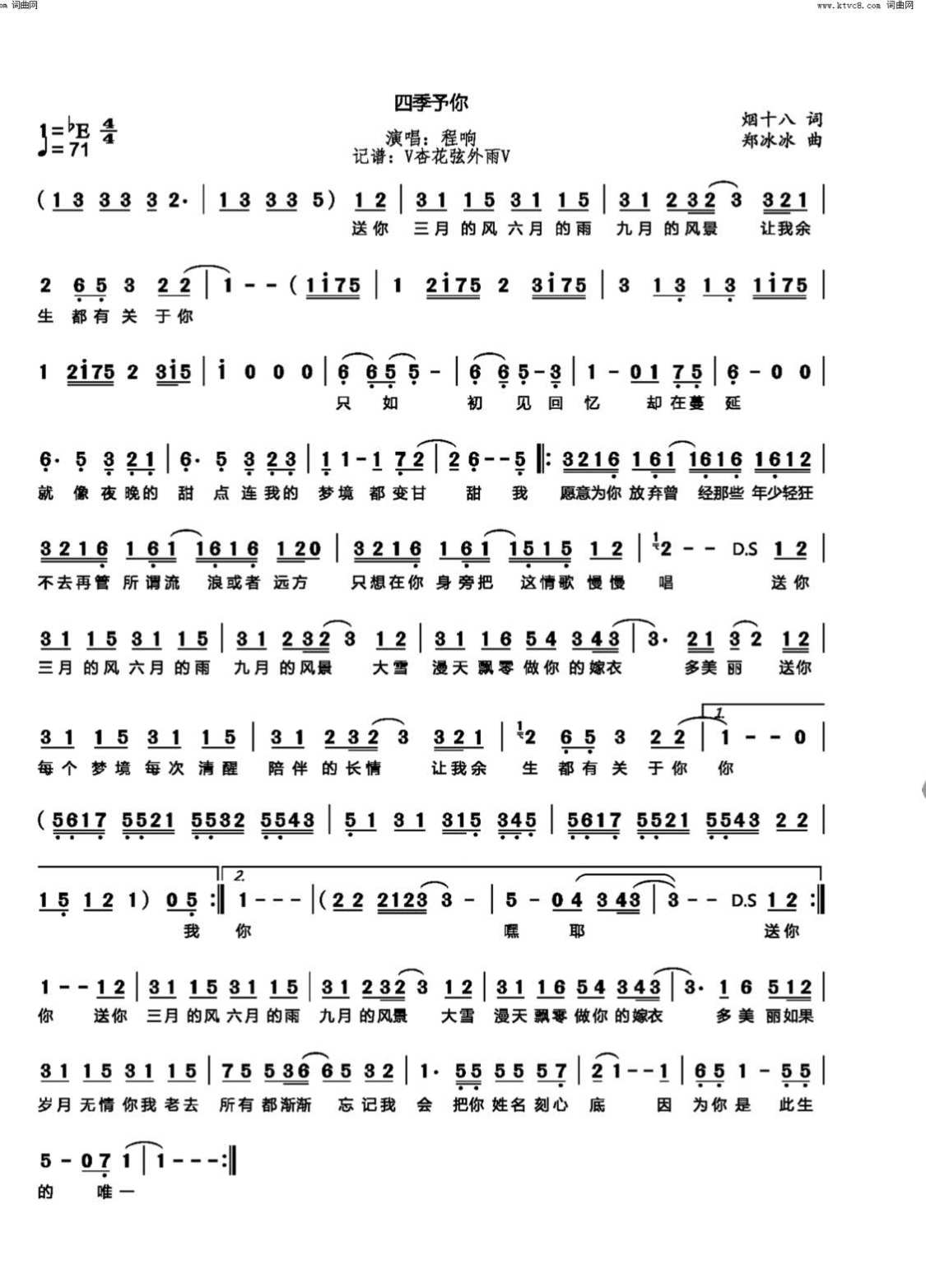 四季予你古筝谱-v杏花弦外雨v四季予你古筝谱-四季予你古筝曲谱-中国