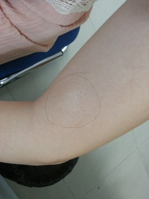 请问我皮肤上的白块是什么,以前有晒伤历史