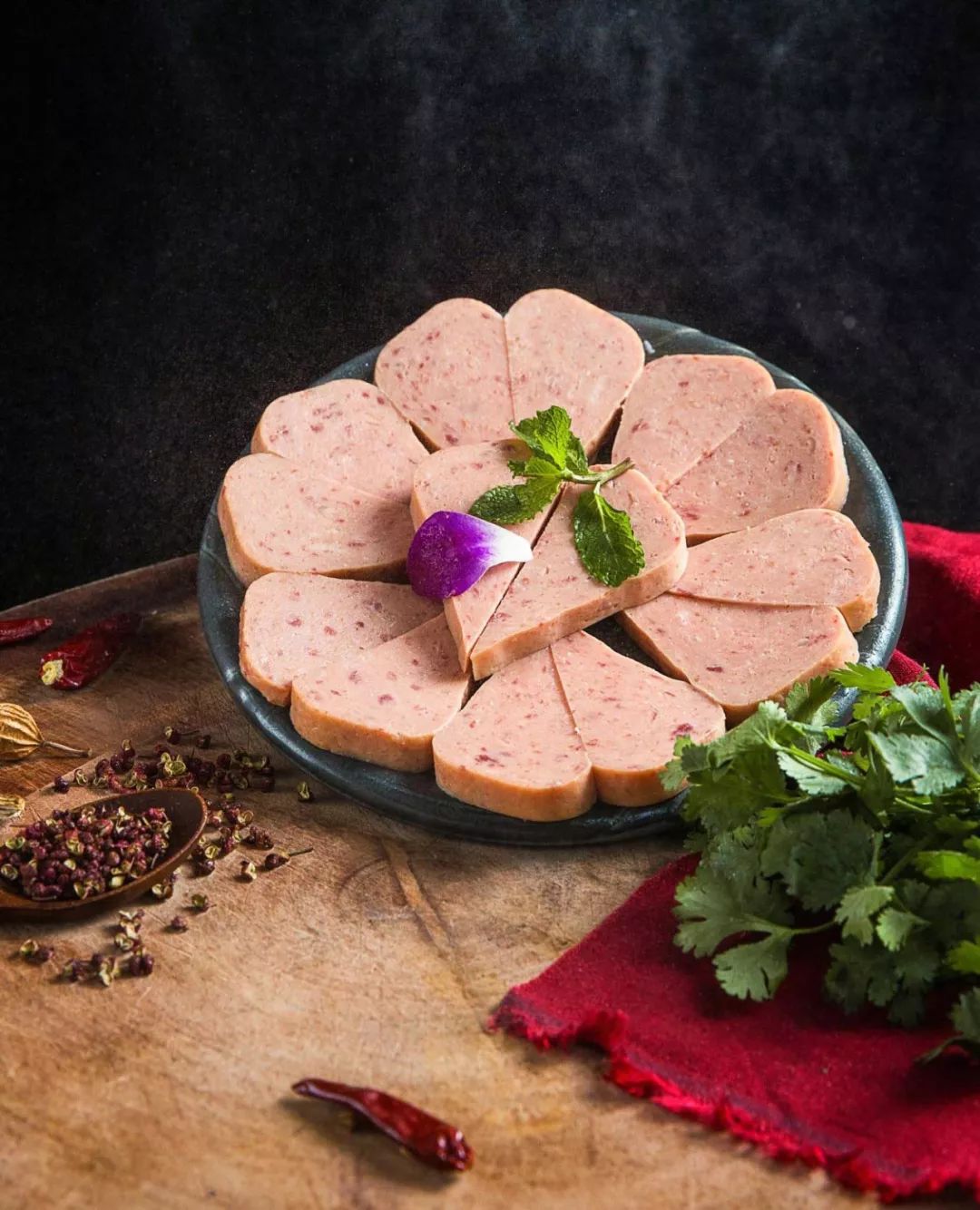 盘子里的火锅菜品午餐肉片