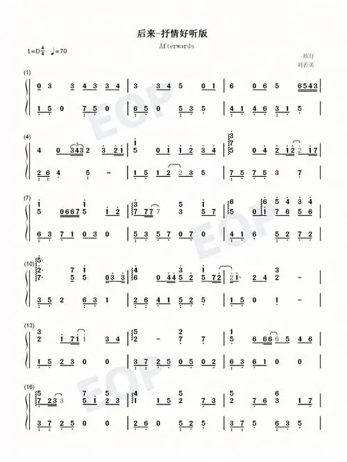 后来-刘若英五线谱预览1-钢琴谱文件(五线谱,双手简谱,数字谱,midi