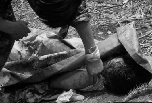 我军收复被越军突袭的阵地之后,看到满地都是我军战友的遗体.