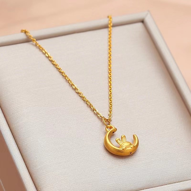 免税真金项链女招财纳福真金吊坠爱心玫瑰女士款锁骨链送妈妈爱心吊坠