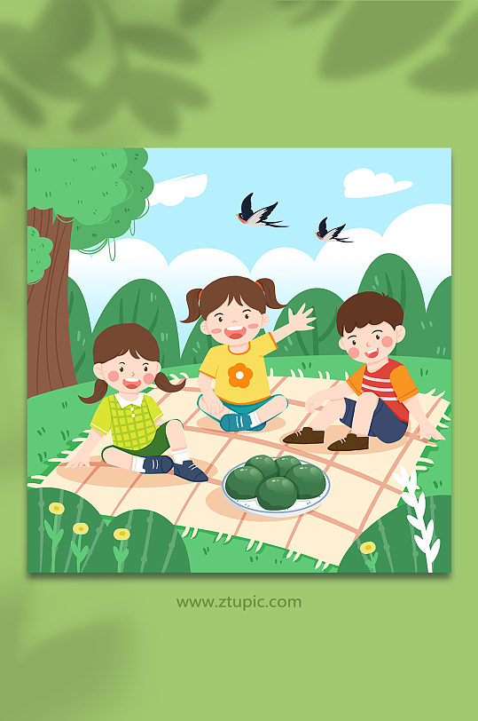清明节踏青动漫图片